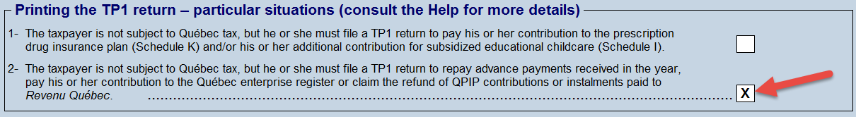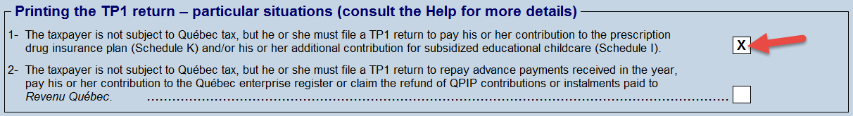 Taxprep provides an option allowing the TP1 return to be applicable (as well as the related bar codes) even for taxpayers who are not subject to Québec income tax.