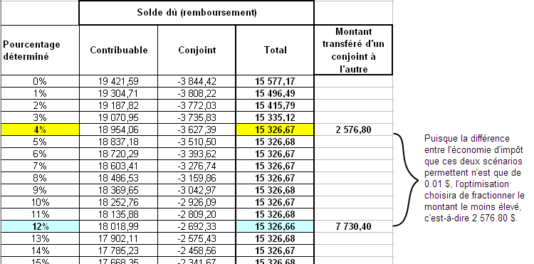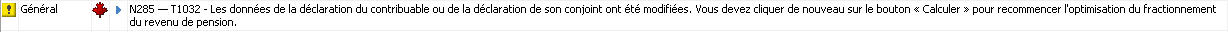 Lorsque Taxprep détecte que le contribuable et son conjoint pourraient tirer avantage du fractionnement du revenu de pension, un diagnostic est émis.