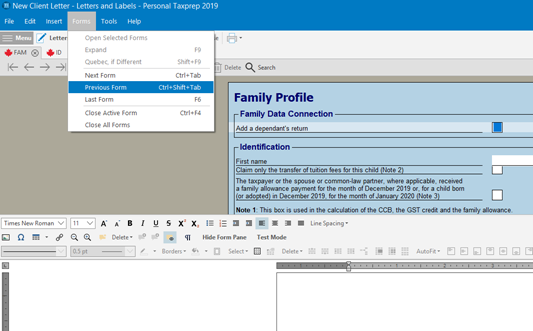 The Forms menu and shortcut keys for commands of this menu are once again available in the different views to edit templates.