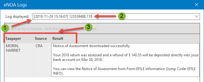Notes: Personal Taxprep keeps all generated Express NOA download logs.