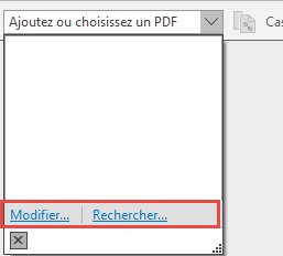 - Pour ajouter ou rechercher un fichier PDF lorsqu’aucun fichier PDF n’est joint à la déclaration, vous devez maintenant cliquer sur la liste Ajoutez ou choisissez un PDF, puis sur Modifier ou Rechercher.