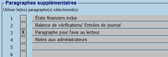 La section « Paragraphes supplémentaires » contient une série de champs permettant aux préparateurs de sélectionner un ou plusieurs paragraphes à ajouter à la lettre au client.