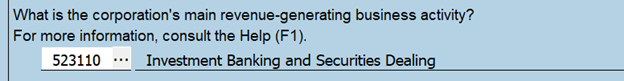 It is crucial that the most accurate business activity is selected the first time since the first year’s code is carried forward to subsequent years. Therefore, for subsequent years, the corporation will be asked to validate that the business description chosen for the last return filed is still accurate.