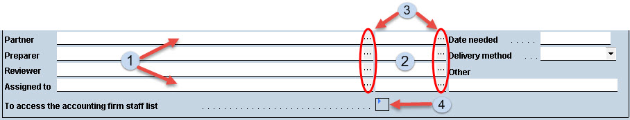 Note: Using the accounting firm staff list in this section of the form will not be possible if no preparer profile has been converted or created.