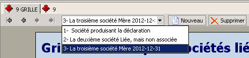 Vous pouvez accéder à la Grille de calcul pour sociétés liées et sociétés associées en double-cliquant ou en faisant un clic droit sur la ligne Accédez au formulaire 9 GRILLE de n’importe quelle annexe d’une société liée ou associée, ou encore en appuyant sur la touche F9 lorsque cette ligne est sélectionnée.