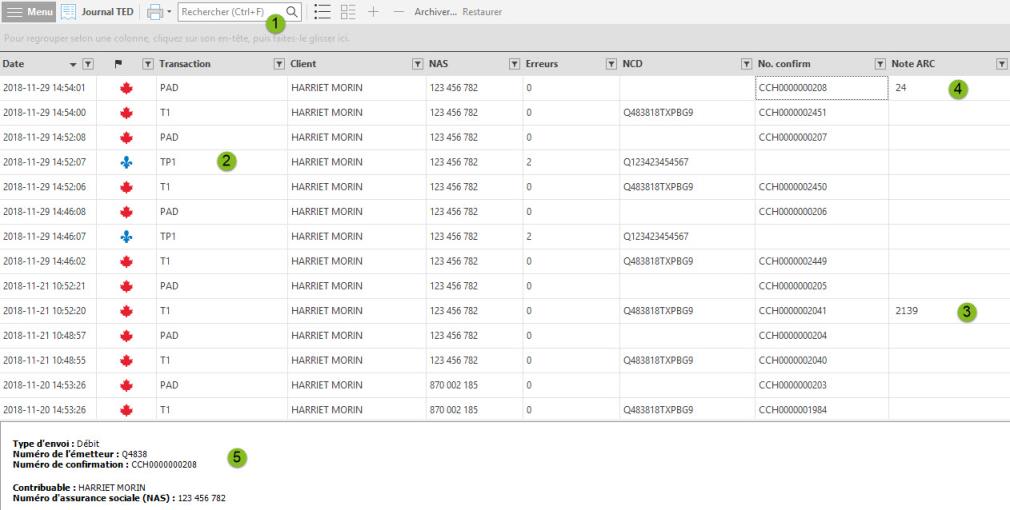 Le Journal TED vous permet de voir les détails de toutes les transactions transmises et reçues par les services électroniques.