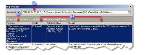 - In the Log displayed box, click the import log you want to display.