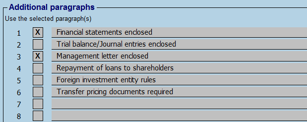 This section is especially useful when you want to include paragraphs that cannot be created automatically based on data in the tax return.